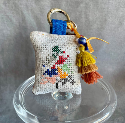 Decorated with glass/wood beeds, metall accessories, tassels, ribbons